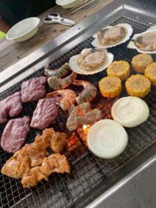 曇り空で小雨が時々降りましたが屋根があるバーベキュー場なので濡れずに楽しめました。