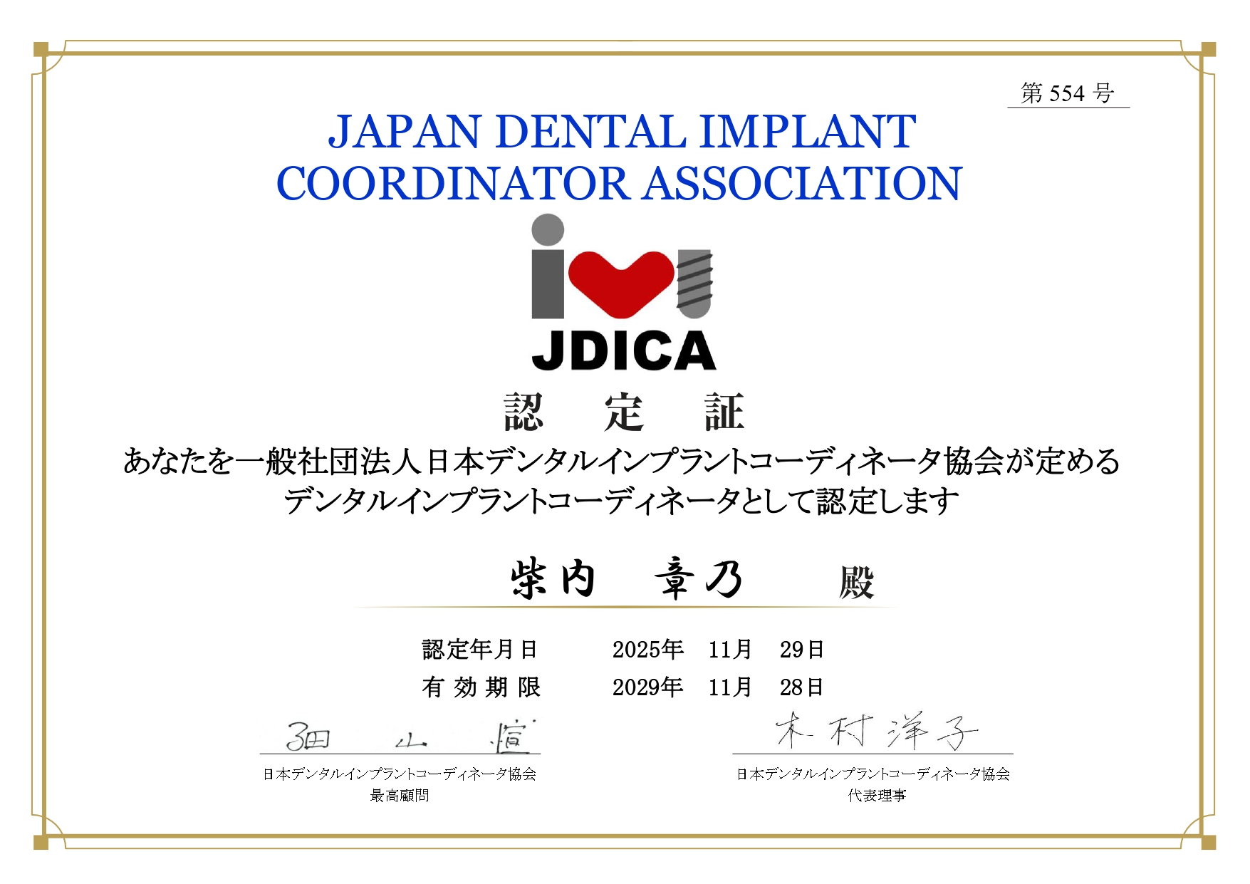 | 日本矯正歯科学会 認定医 |